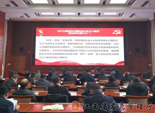 黨的十九屆四中全會閉幕后,省應(yīng)急管理廳黨組理論學(xué)習(xí)中心組、各基層黨組織和黨員干部認(rèn)真學(xué)習(xí)全會公報、《決定》等重要文件,結(jié)合實(shí)際研究貫徹落實(shí)。為幫助大家加強(qiáng)理解、深入貫徹全會精神,11月28日下午,省應(yīng)急管理廳組織輔導(dǎo)講座,邀請江西省委黨校李志強(qiáng)教授圍繞學(xué)習(xí)貫徹黨的十九屆四中全會精神作專題輔導(dǎo)。廳領(lǐng)導(dǎo)、廳機(jī)關(guān)各處室及廳屬單位共120余人參加。 [查看詳細(xì)]