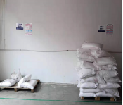 4物料區間未劃分擺放區域與物料名稱和安全周知卡 四樓粉劑車間:已劃分了區域和增加了產品名稱標示牌與安全周知卡